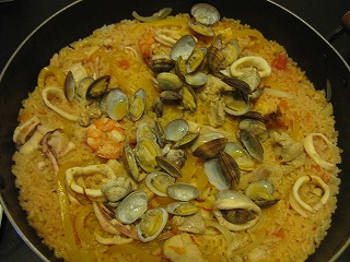 こないだは、初めて鍋でパエリア作ってみました。