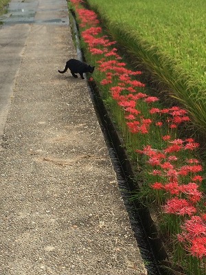 黒猫と彼岸花