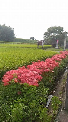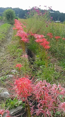 帰り間際に通った道沿いに、沢山の彼岸花が咲いてました。
