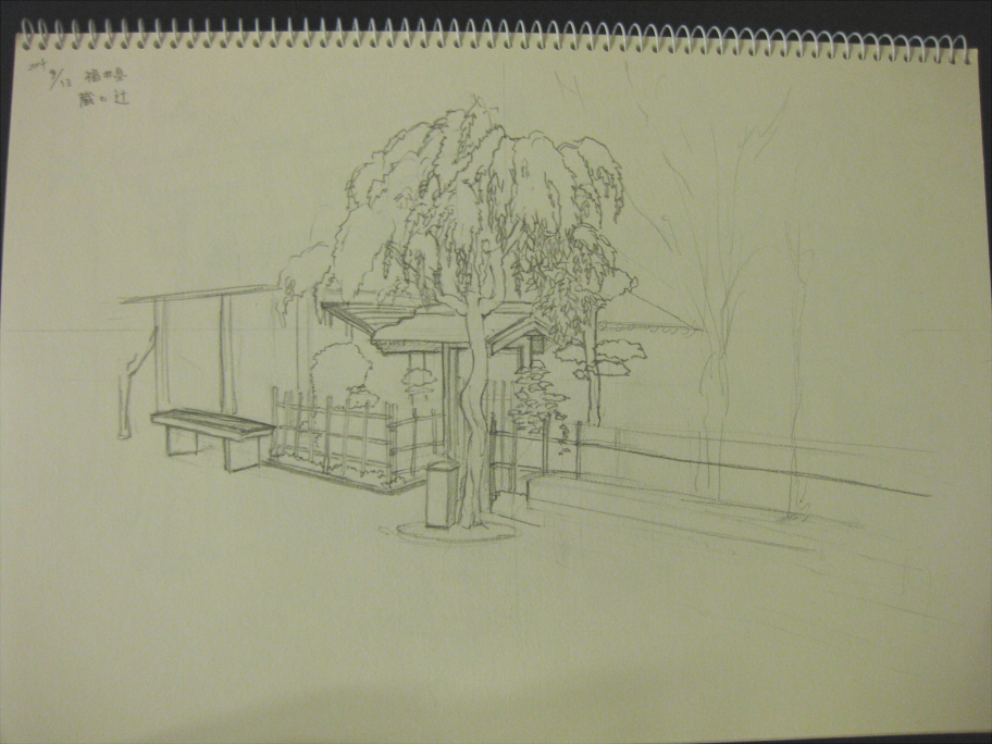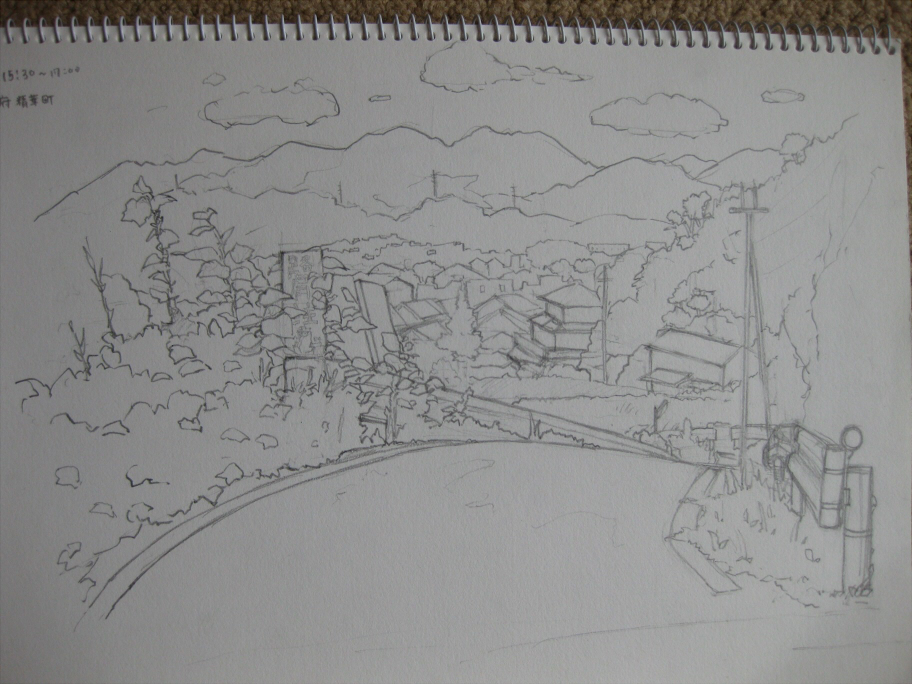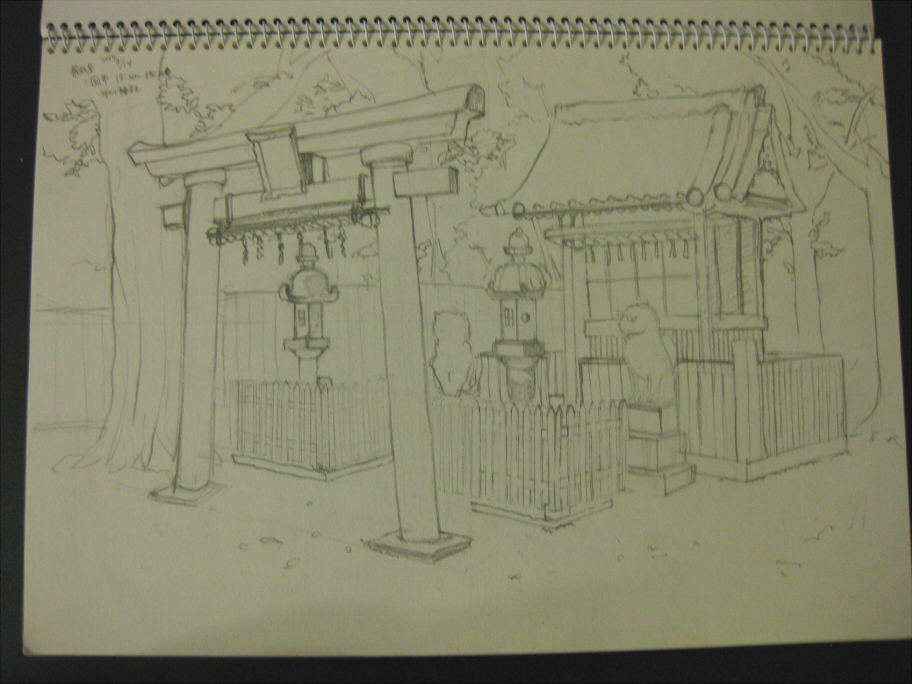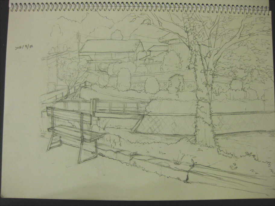 これを描いてるとき、通りすがりの人が挨拶してくれたり、「絵を描いてるの?良い趣味ねぇ~^^」なんて話しかけてくれたりするのが、なんかほのぼのしてて良かった。