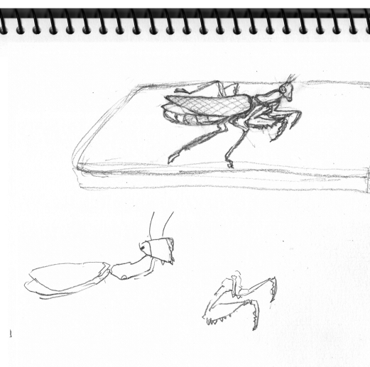 ↑の公園で描いてたら、旦那がカマキリを見つけて遊んでたので、「描かせて~」って言って