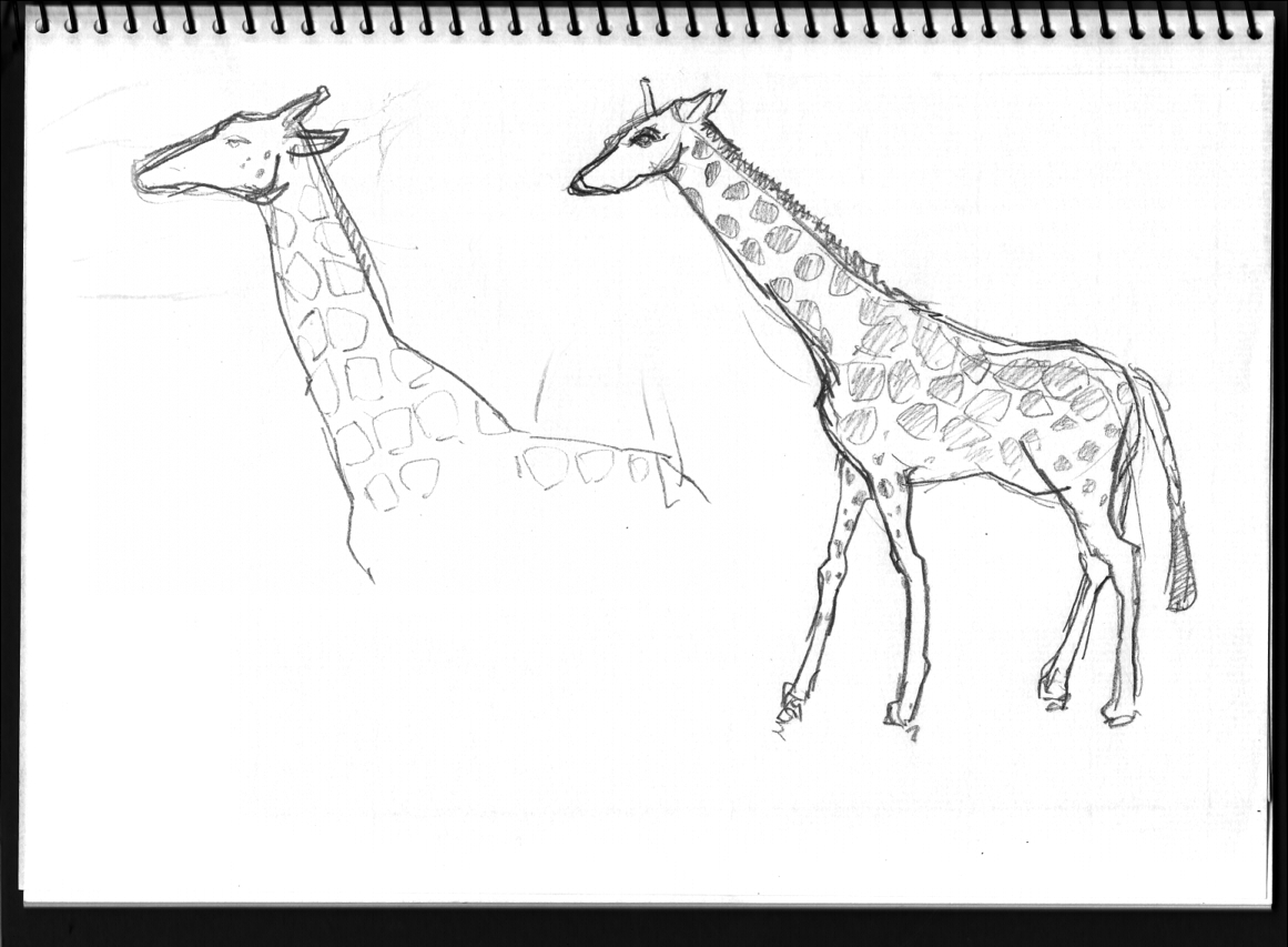 最初に胴体を上の方に描いてしまって「頭が入らなくなるから」と首を犠牲にしたために、めちゃめちゃ首の短いキリンが出来上がってましたwww