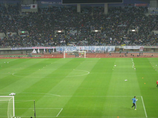 ゴール裏はコアなファンが集まりやすいので(チケットはそこしか取れなかったんですが^^;)代表ユニじゃなくて、色んなJのユニを着た人がたくさんいました。