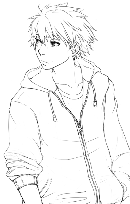 私は男の子の線画を描いただけ。