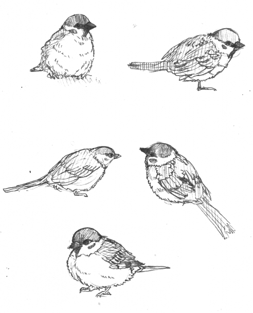 会社の前にもこもこの雀が一杯いて可愛くて描きたくなって描いたやつです。