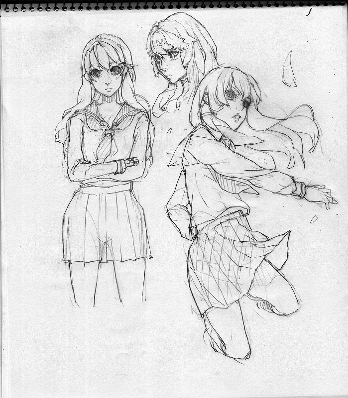 今は、まず全体的なバランスやポーズを薄く鉛筆で描いて、全体的なイメージを描き、徐々に線を確定し、さらに描き込んでいくという順番になってきました。